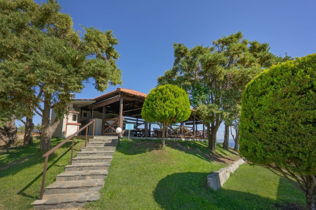 Κάτω από τη δροσερή σκιά του ξύλινου κιόσκι μας, οι επισκέπτες απολαμβάνουν γεύματα, όμορφες συζητήσεις ή απλώς τη γαλήνη της φύσης.